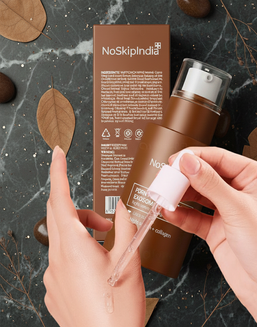 Choose the NoSkipIndia PDRN Pink Collagen Exosome Shot 7500 for professional-grade overnight repair. This product is a triple-threat, combining the regenerative power of PDRN, the firming benefits of Pink Collagen, and the advanced delivery system of Exosomes. It works hard while you rest, giving you noticeably firmer, smoother, and more youthful-looking skin by morning.