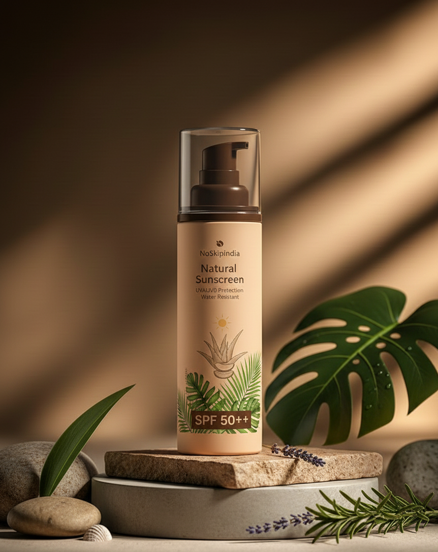 Choose the NoSkipindia Natural Sunscreen because it delivers a powerful blend of high-level protection and natural skin care. You get the assurance of SPF 50++ and water resistance without the heavy, greasy feeling or the harsh chemicals often found in sunscreens. It is the perfect choice for keeping your skin safe, hydrated, and soothed every single day.